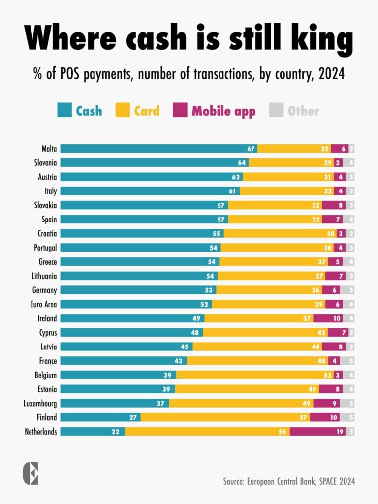 Smatramo da će gotovina i dalje ostati relevantna u financijskim transakcijama što pokazuju i podaci Evropske Centralne banke za 2024. godinu.