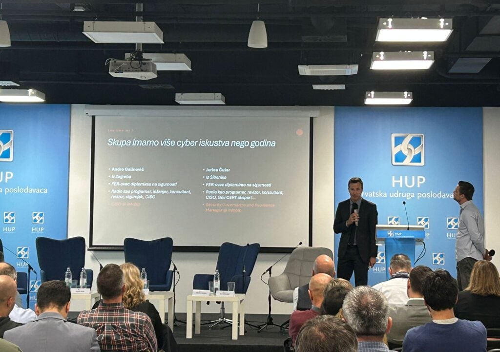 “Ovo je jedna od prilika u HUP-u i početak niza konferencija kojima ćemo pomoći biznisima da budu spremni na sve izazove. Nemamo vremena, imamo rok svi zajedno, i Hrvatska i Europska unija. Do 1. siječnja 2030. firme moraju imati sve certificirano, što im je teško jer moraju raditi procjene rizika koje izravno utječu na njihove poslovne parametre. Svaka firma mora imenovati direktora kooperativne sigurnosti i certificirati poslovanje u digitalnom prostoru.”