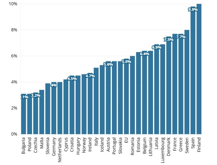Mjesečno gledano, broj nezaposlenih pao je za 185.000 u EU i 184.000 u eurozoni. Među najvećim gospodarstvima bloka, Njemačka i Nizozemska zabilježile su najniže stope nezaposlenosti, svaka po 4%.
