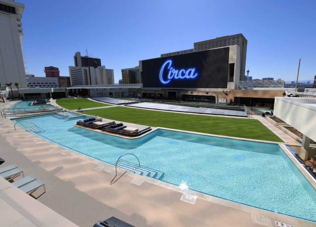 Circa je, međutim, nešto posve drugo. Ona je atrakcija – a to je, uostalom, ono što Vegas jest. S najvećom sportskom kladionicom na svijetu koja se proteže na tri kata, sjedalima poput onih u kinu, ekranom dovoljno velikim za prijenos 19 utakmica istodobno s koeficijentima, te vanjskim kompleksom Stadium Swim – najvećim bazenom u “Gradu grijeha”, zagrijanim na 37 stupnjeva u hladnijim mjesecima, s TV ekranom visine 43 metra – ljudi dolaze samo da bi to vidjeli. Kao pravi showman, Stevens ga naziva “vodenim kazalištem” i vjeruje da je izgradio “najbolji bazen u jeb*noj povijesti svijeta”.